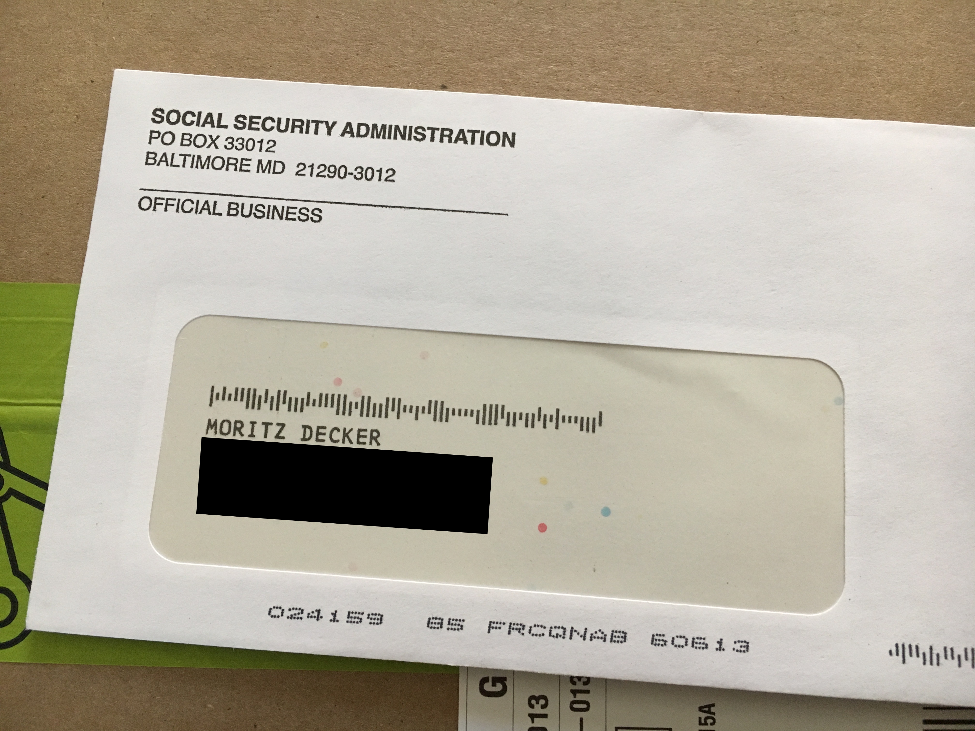 👆🏼 Social Security Karte erhalten. Umschlag behalten!